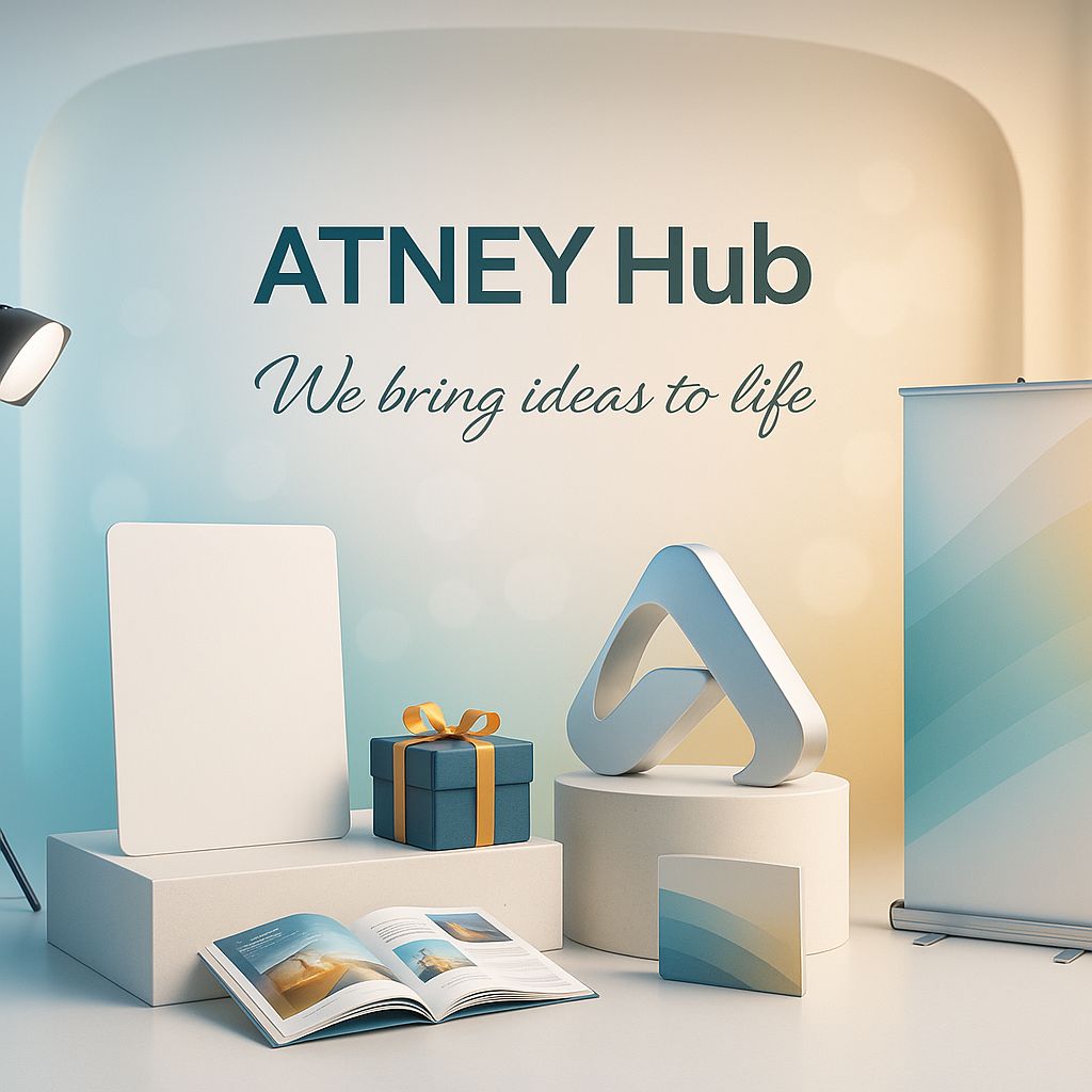 At ATNEY Hub, Advertising & Production LLC, we offer a complete range of custom-branded products that help businesses stand out. From everyday promotional giveaways to premium executive gifts, large-format branding to eco-friendly solutions — our products are crafted to impress and built to last.